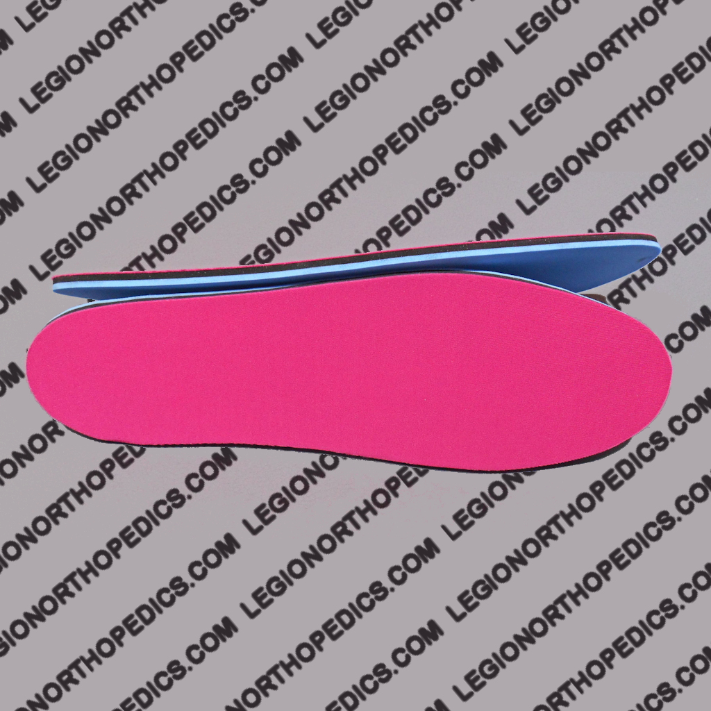 This insole is a combination of neoprene and soft foam; these materials make the insoles thick but soft. The neoprene colors are blue, and pink is softer, and the cloth tissue is a smooth Lycra fabric type. Sizes are available up to size 16.